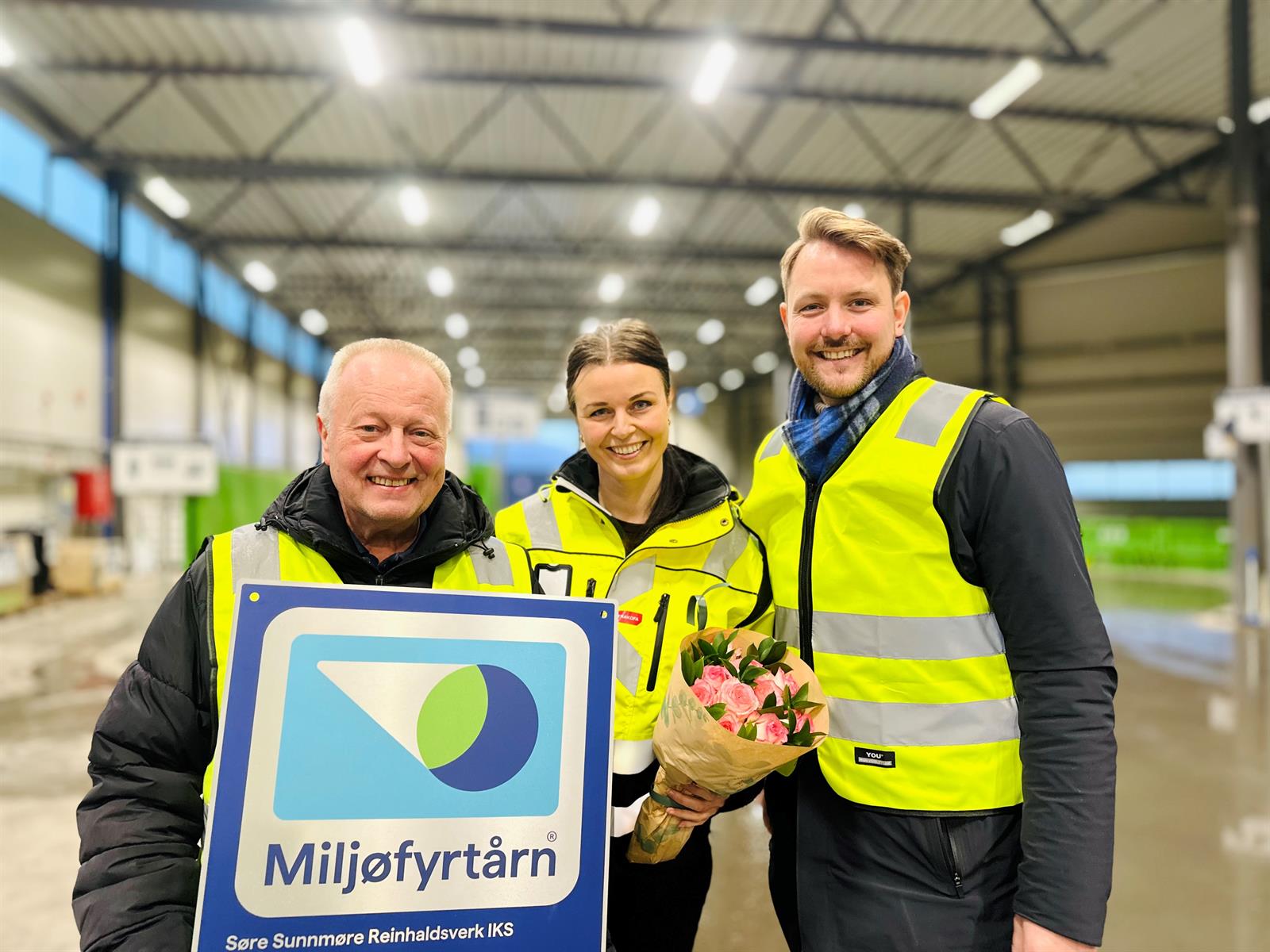 Søre Sunnmøre Reinhaldsverk fekk nyleg gleda av å smykke seg med tittelen Miljøfyrtårn. Torsdag i førre veke kom ordførar i Ulstein kommune Stian Skorgen Scheide på besøk for å gratulere og overrekke plakett og blomsterbukett.
